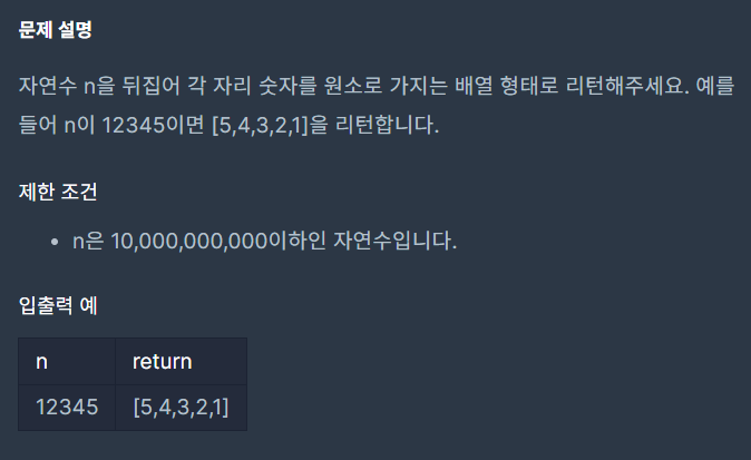 처음에는 (int) n % 10 으로 썼다가 실패가 떴다.