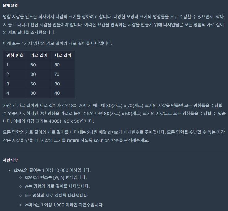 public int solution(int[][] sizes) {